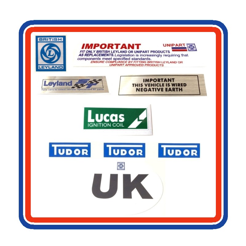 Mini 1275GT 6 Piece Engine Bay Sticker Bundle 75 on with UK Sticker