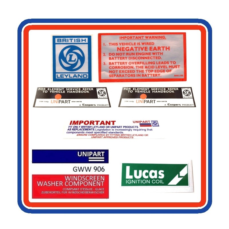 MGB & GT 7 Piece Engine Bay Sticker Bundle (Plastic Bumper)