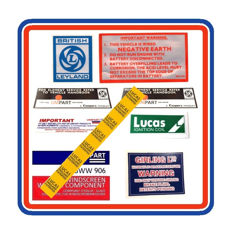MGB & GT 9 Piece Engine Bay Sticker Bundle (Plastic Bumper)