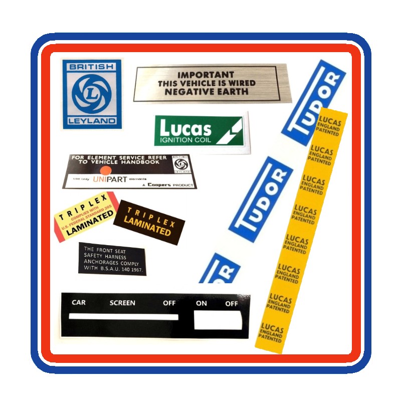 BL Mini Mk3 850 1000 & Cooper 8 Piece Engine Bay Sticker Bundle + Heater Control Panel Sticker