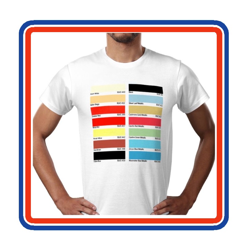 White T-Shirt with genuine BL colour chart across the chest, mighty fine!
